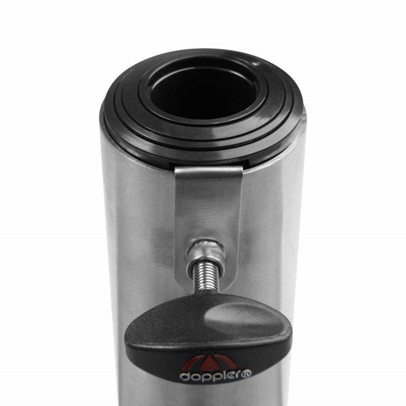 Ten jasnoszary stojak z polerowanego granitu jest wyposażony w 2 kółka i wysuwany uchwyt ułatwiający przemieszczanie. Parasol zakotwicza się w rurze ze stali nierdzewnej i zabezpiecza za pomocą dwóch śrub blokujących. Rura ma kilka pierścieni redukcyjnych, które umożliwiają stosowanie parasoli o średnicy 32-60 mm. Dzięki wadze 70 kg zapewniona jest...