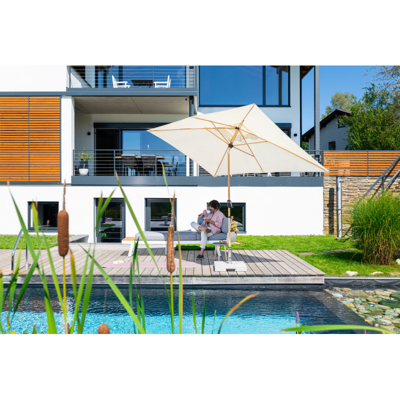 Ten parasol jest idealny na balkon lub taras. Łatwe i wygodne otwieranie i zamykanie parasola dzięki mechanizmowi korbowemu. Czasza parasola z wodoodpornego poliestru jest zdejmowany i można go prać ręcznie. Czasza parasola jest dostępny w różnych kolorach i ma dobrą ochronę przed promieniowaniem UV 50+.