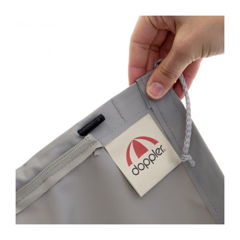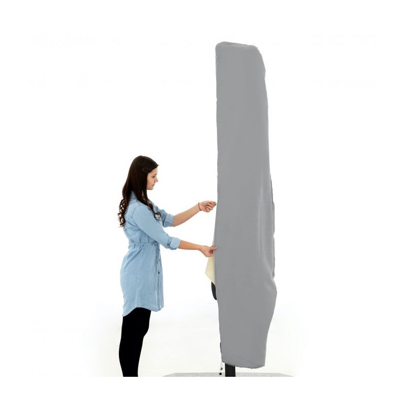 Dzięki temu pokrowcowi parasol jest bezpiecznie chroniony przed warunkami atmosferycznymi i blaknięciem od słońca. Zastosowanie pokrowca ochronnego znacznie wydłuża żywotność parasola. Czasza parasola ochronny wykonany jest w 100% z odpornej na warunki atmosferyczne tkaniny poliestrowej. Jest on wyposażony w sznurek ściągający, zamek błyskawiczny i drążek sterujący. Dzięki temu czasza parasola można łatwo naciągnąć na parasol.