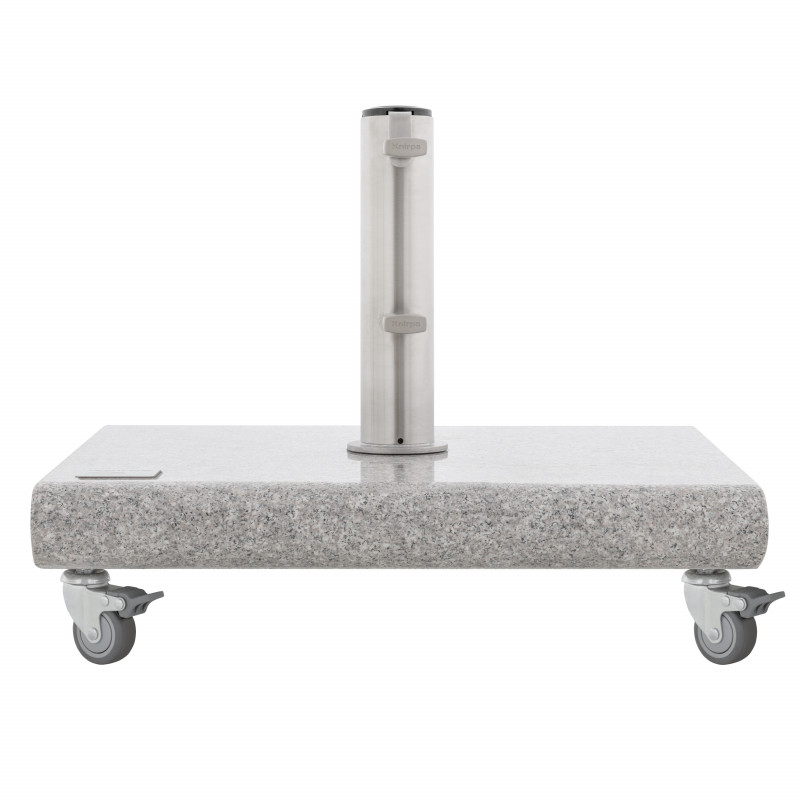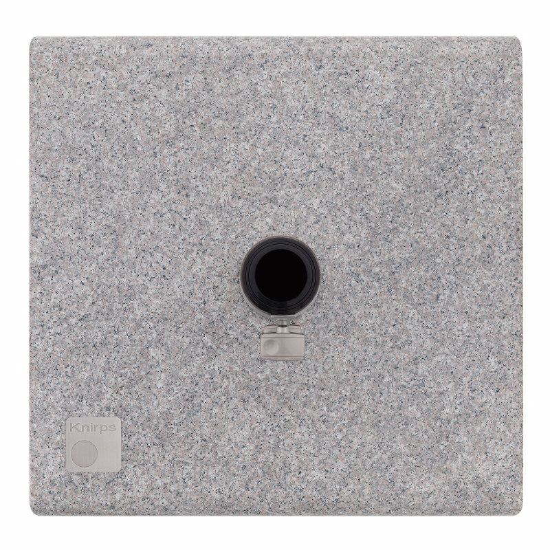 Ten mobilny stojak premium firmy Knirps jest wykonany z wysokiej jakości polerowanego granitu i wyróżnia się luksusowym wykonaniem. Posiada pręt stojący ze stali nierdzewnej i dwie śruby blokujące do bezpiecznego zakotwiczenia. Stojak jest również wyposażony w kółka ułatwiające przemieszczanie. W zestawie znajdują się pierścienie redukcyjne, w tym wkładki, które są przeznaczone do parasoli centralnych o średnicy drążka stojącego od 32 do 60 mm (zawsze należy wziąć pod uwagę rozmiar parasola i zalecane minimalne obciążenie dla każdego modelu).