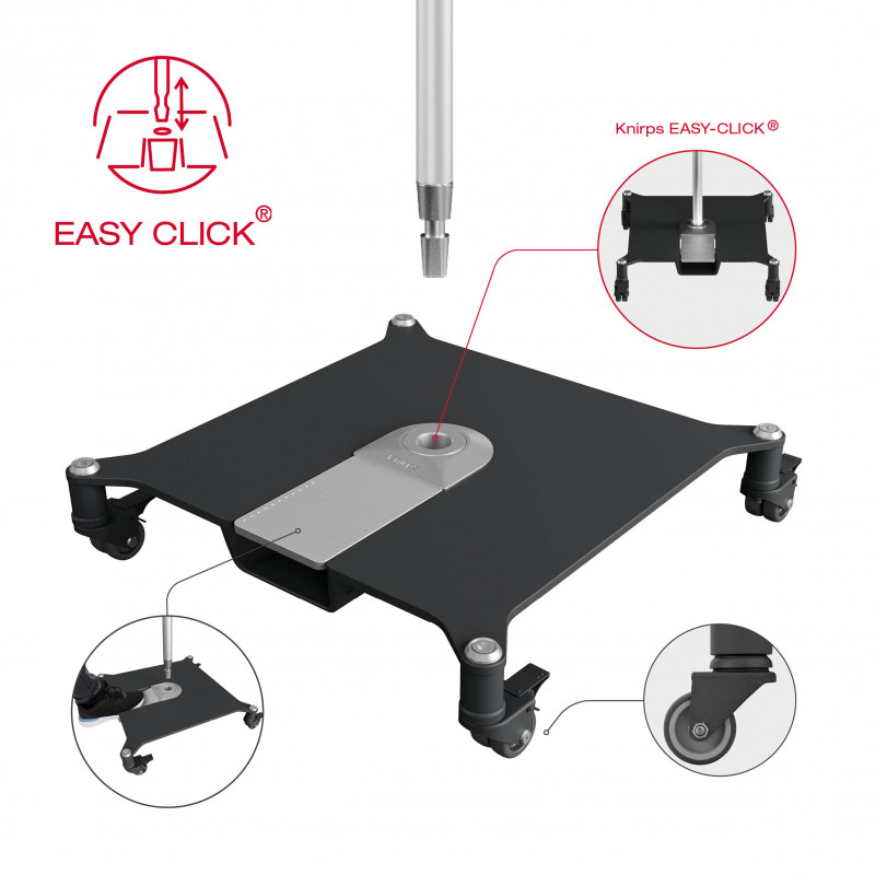 Knirps 50 kg to wysokiej jakości metalowy stojak z kółkami do bezpiecznego załadunku parasoli PHOENIX. Wykonany jest z wysokiej jakości stali z powłoką epoksydową. Dzięki 4 kół kom stojak jest łatwy w obsłudze. Parasol zakotwiczony w stojaku można łatwo przesuwać po przestrzeni, tworząc cień o każdej porze dnia. Stojak ma bardzo elegancki wygląd i nadaje się do nowoczesnych tarasów.