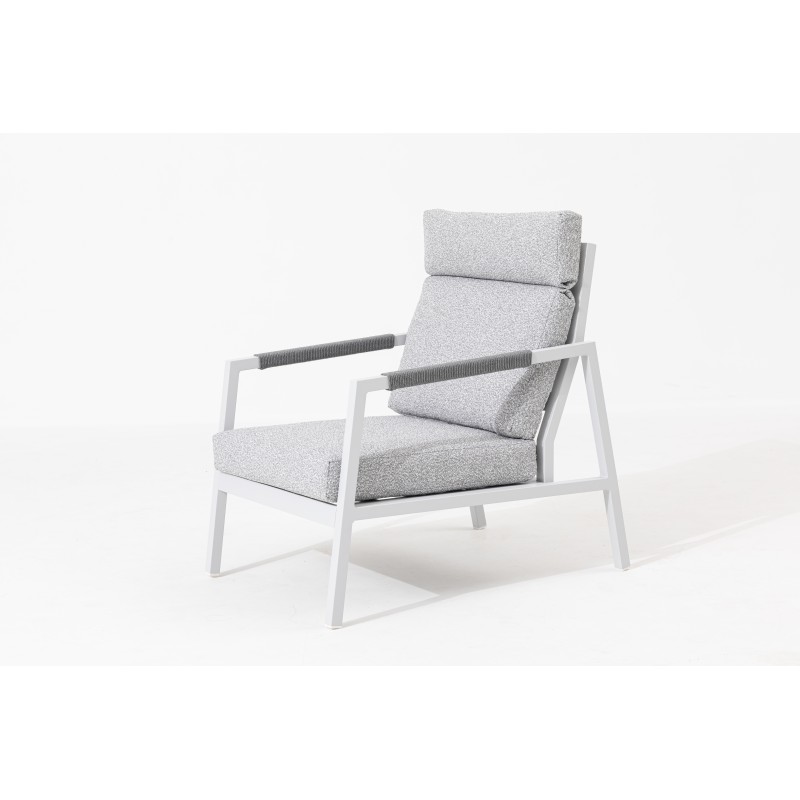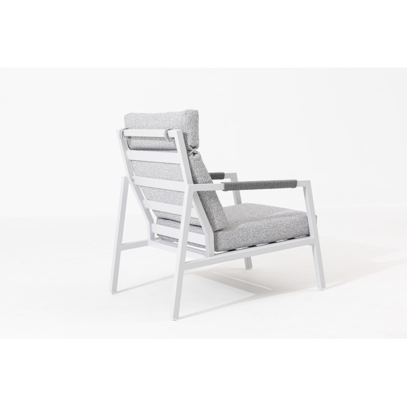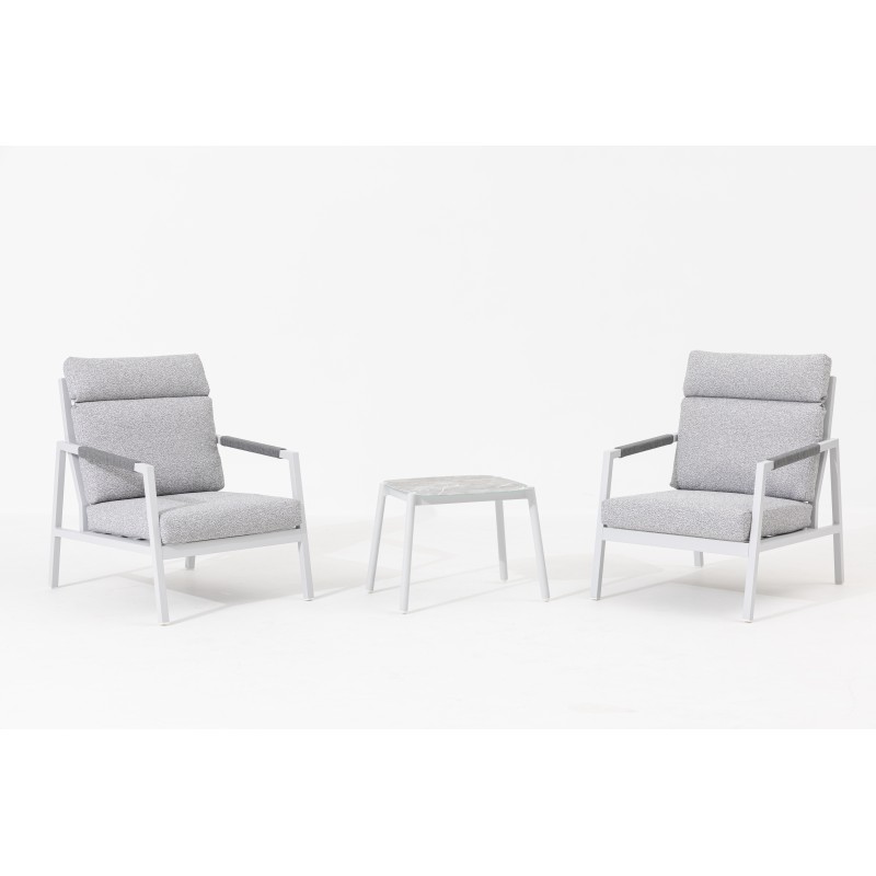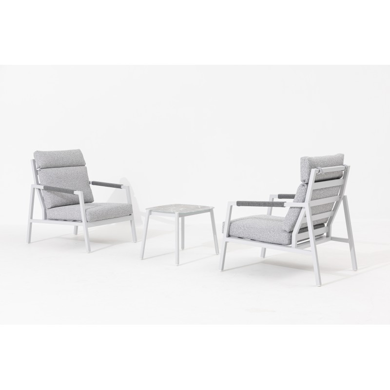 Lekka aluminiowa konstrukcja w ponadczasowym białym kolorze gwarantuje nie tylko wytrzymałość i stabilność, ale także łatwą obsługę. Zestaw idealnie sprawdzi się w codziennym użytkowaniu na tarasie, balkonie czy w ogrodzie, gdzie można cieszyć się relaksem na świeżym powietrzu.
