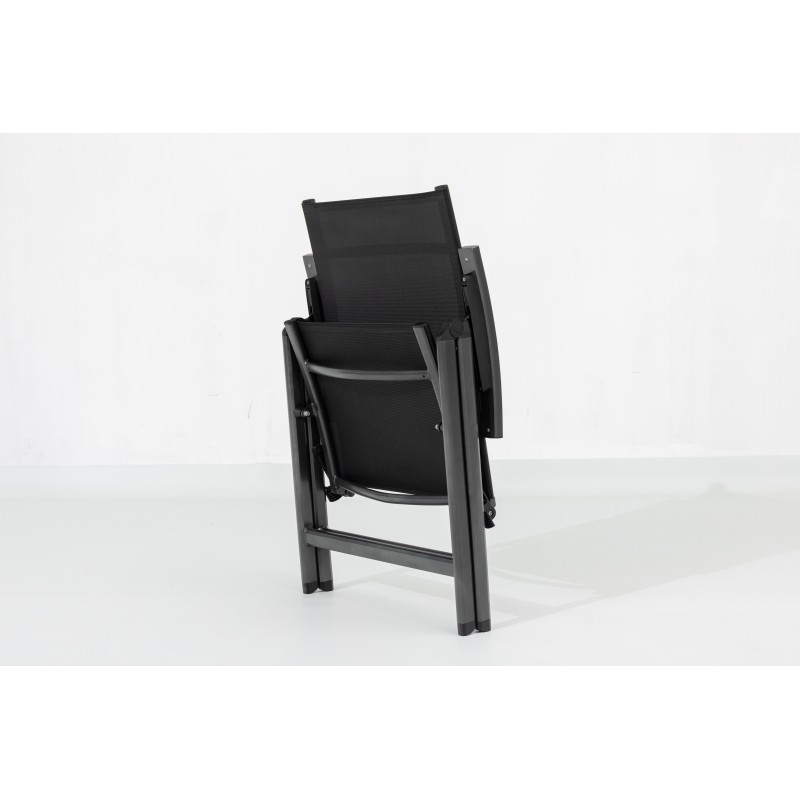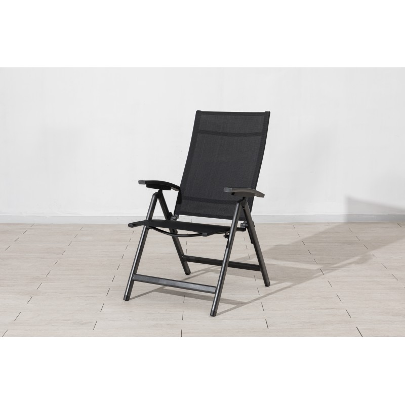 Rozkładane krzesła ogrodowe Avantage doskonale uzupełniają stół i zapewniają maksymalny komfort siedzenia. Solidna aluminiowa konstrukcja w kolorze antracytowym , uzupełniona wysokiej jakości syntetycznym splotem tekstylnym, gwarantuje długą żywotność i odporność na niekorzystne warunki atmosferyczne , takie jak deszcz, promieniowanie UV i zmiany temperatury. Ergonomicznie ukształtowane krzesło z szerokim siedziskiem i wysokim oparciem pozwala na wygodne siedzenie zarówno podczas posiłków, jak i odpoczynku. System regulacji nachylenia oparcia pozwala na dostosowanie go do indywidualnych potrzeb, dzięki czemu jest ono idealne do relaksu po długim dniu.