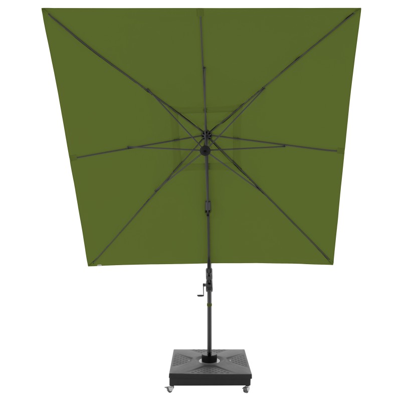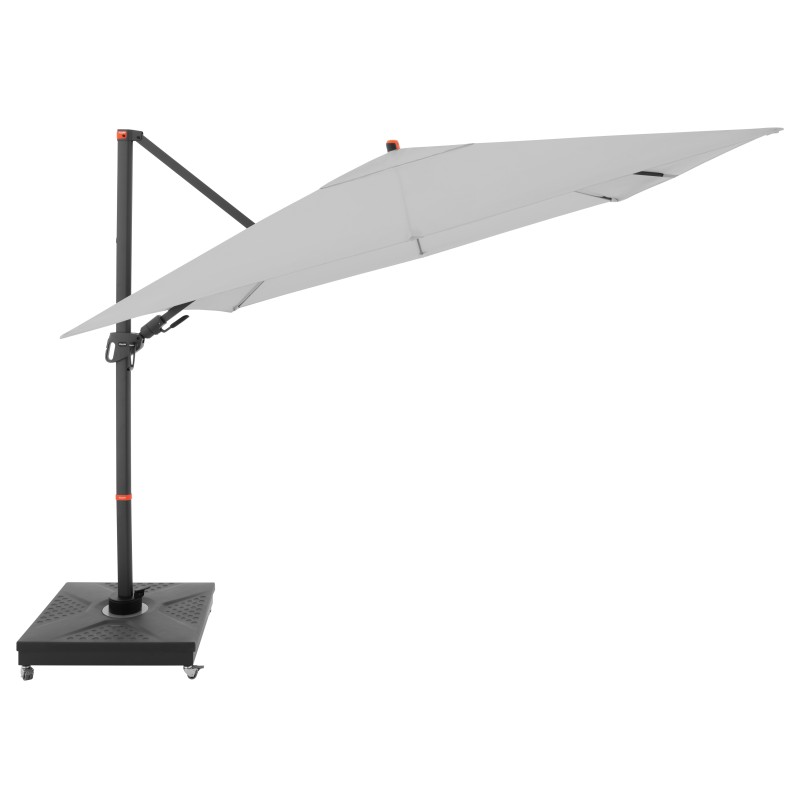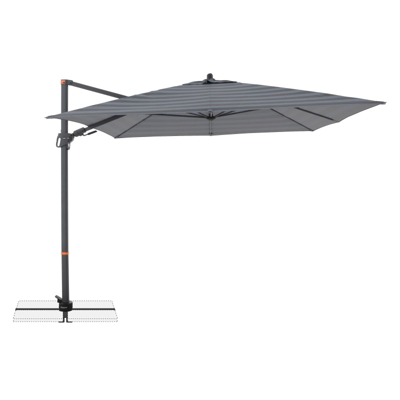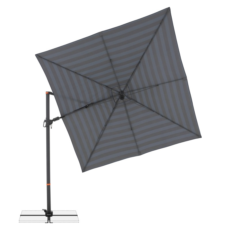 Dzięki kwadratowemu dachowi parasol szczególnie nadaje się do zacieniania mebli ogrodowych. Parasol można również obracać o 360 stopni , obracać w obie strony i odchylać do tyłu w siedmiu pozycjach.