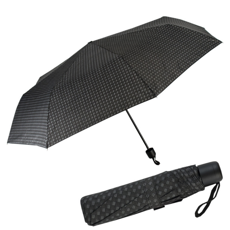 Męski składany parasol wysokiej jakości. Stelaż parasola wykonany z czarnej stali gwarantuje wytrzymałość i stabilność. Odporny na korozję. Poliestrowe poszycie jest odporne na zmiany wilgotności i temperatury, nie kurczy się.