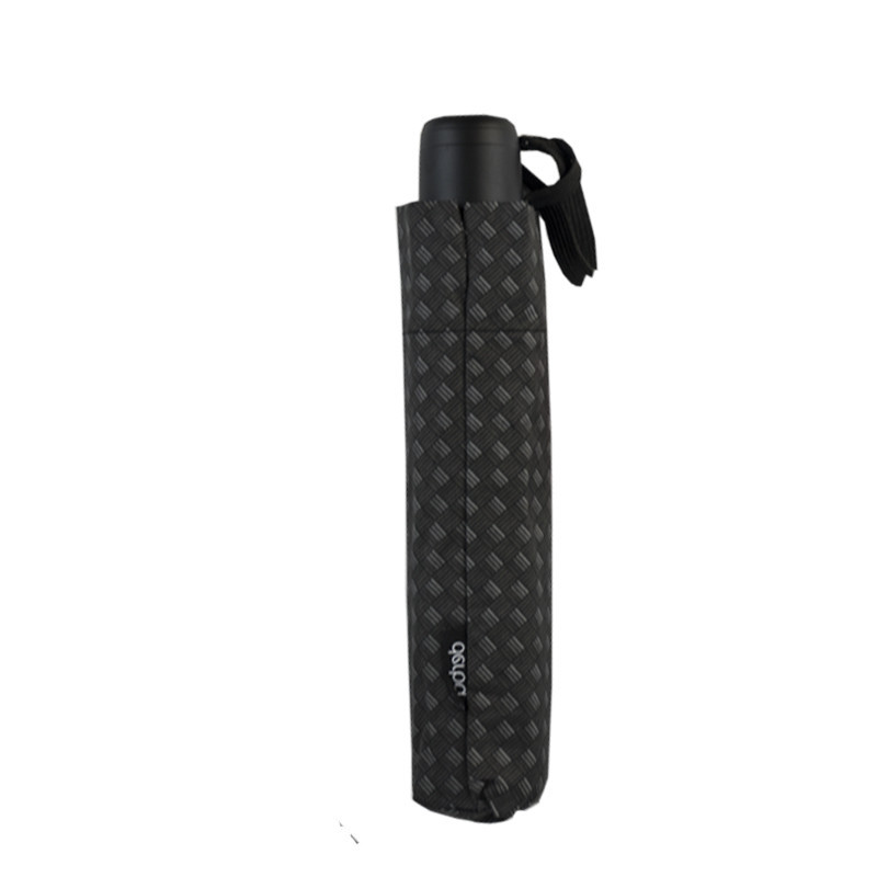 Męski składany parasol wysokiej jakości. Czarna stalowa rama parasola gwarantuje wytrzymałość i stabilność. Odporny na korozję. Poliestrowe poszycie jest odporne na zmiany wilgotności i temperatury, nie kurczy się.