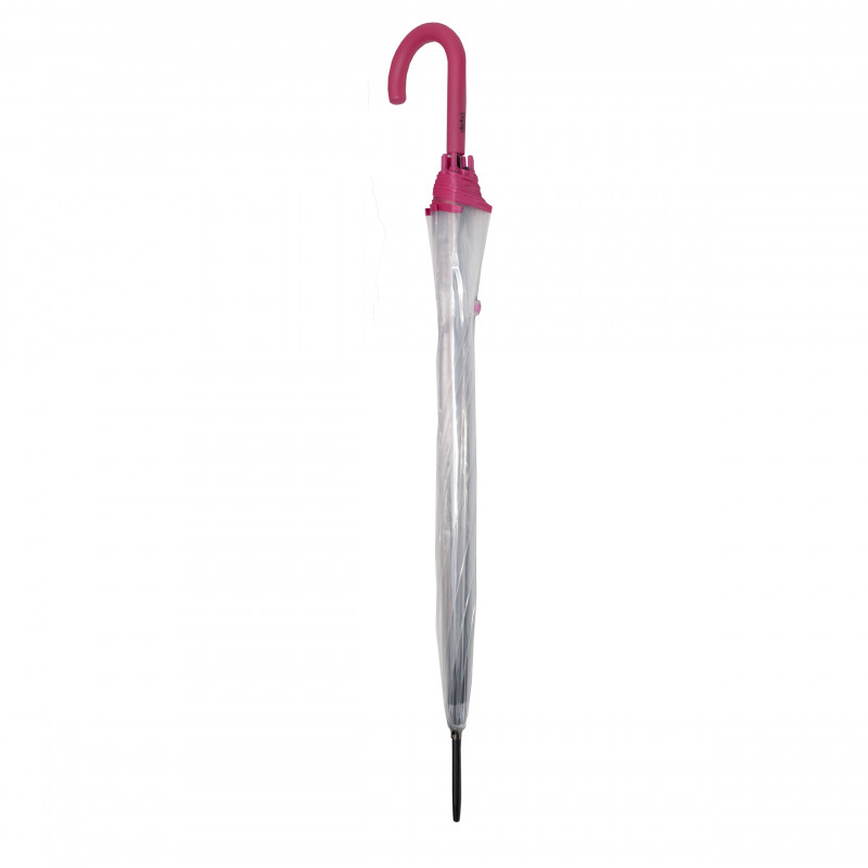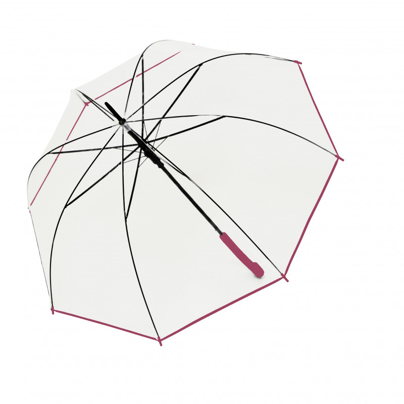 Przezroczysty damski parasol z trzonkiem jest wygodny w dłoni, stabilny i wytrzymały stalowy stelaż. Solidna wiatroszczelna konstrukcja w kolorze czarnym. Duży przezroczysty dach.