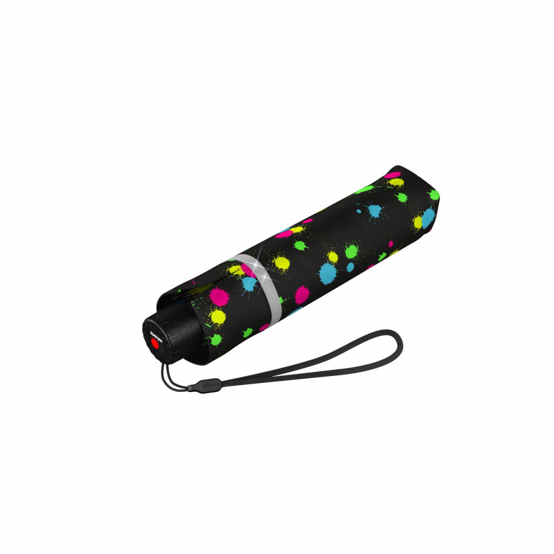 Wytrzymały parasol o kompaktowych rozmiarach z odblaskowymi paskami. Łatwy w użyciu dzięki niewielkiej wadze wynoszącej zaledwie 205 g.