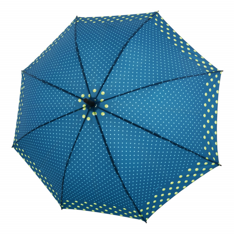Hit Long Automatic Twinkle to parasol typu bare shot z ponadczasowym wzorem w kropki. Ma wysokiej jakości konstrukcję z czarnej stali i włókna szklanego, która sprawia, że parasol jest trwały, a jednocześnie chroni go przed uszkodzeniem przez wiatr. Nawet jeśli parasol zostanie przewrócony przez wiatr, nie zostanie uszkodzony, parasol można łatwo odwrócić z powrotem do pierwotnej pozycji. Poszycie wykonane jest z przyjemnej w dotyku tkaniny pongee, która dobrze znosi zmiany fal i temperatur, nie kurczy się.