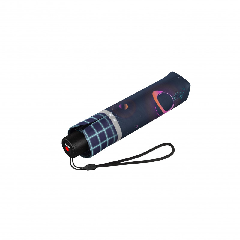 Wytrzymały parasol o kompaktowych rozmiarach z odblaskowymi paskami. Łatwy w użyciu dzięki niewielkiej wadze wynoszącej zaledwie 205 g.Ekskluzywna konstrukcja uchwytu z elastycznym paskiem na nadgarstek.
