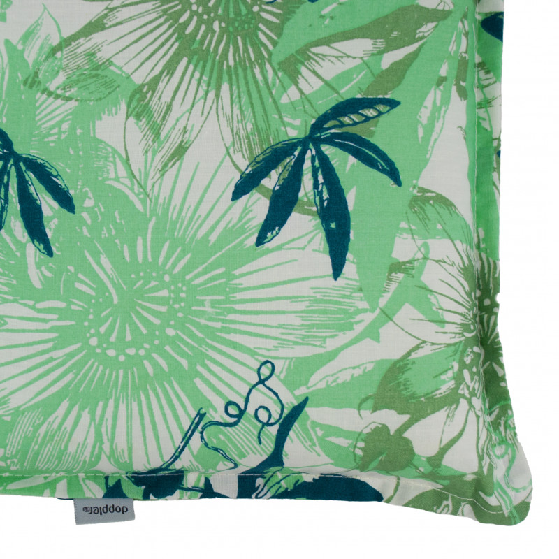Poduszka z średnim oparciem do mebli ogrodowych z serii LIVING jest w wersji z obszytym brzegiem, przeszyta 2x szwem pierścieniowym w oparciu. Mocowanie odbywa się za pomocą przesuwanej klamry. Dzięki klamrze można dostosować rozmiar do rozmiaru i rodzaju krzesła, klamra jest stała i nie wysuwa się. Poduszka siedziska jest mocowana za pomocą dwóch sznurowadeł w zagięciu poduszki. Grubość poduszki jest optymalna dla wszystkich typów krzeseł. Konstrukcja nadaje się również do wymagających warunków kawiarni, ogrodów i restauracji. Pokrowca nie można zdjąć .