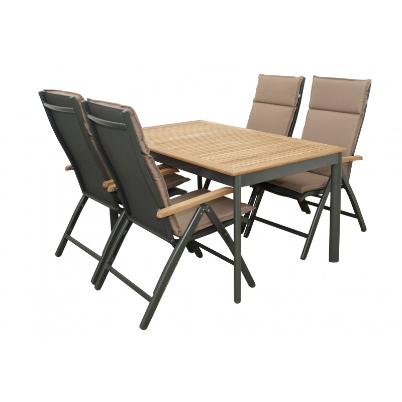 Siedzisko mebli ogrodowych z serii HIT UNI z zaokrąglonymi narożnikami wykonane jest z wytrzymałego poliestru i jest łatwe w utrzymaniu. Pokrowca nie można zdjąć. Wyprodukowano w Czechach.