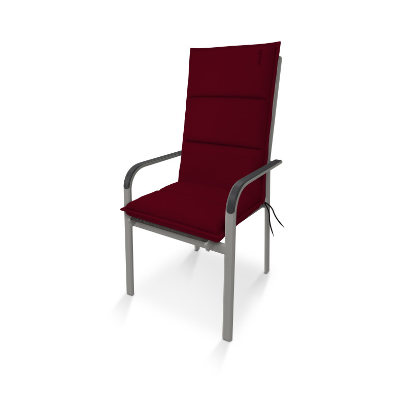 Poduszka z wysokim oparciem z serii CITY w wersji z obszytą krawędzią, przeszyta 1x w siedzisku, 2x w oparciu. Mocowanie odbywa się za pomocą przesuwanej klamry. Dzięki klamrze można dostosować rozmiar do rozmiaru i rodzaju krzesła, klamra jest stała i nie wysuwa się. Siedzisko jest mocowane za pomocą dwóch sznurowadeł w zagięciu poduszki. Grubość poduszki jest optymalna dla wszystkich typów krzeseł. Konstrukcja nadaje się również do bardziej uciążliwych warunków w kawiarniach, ogrodach i restauracjach. Pokrowca nie można zdjąć.