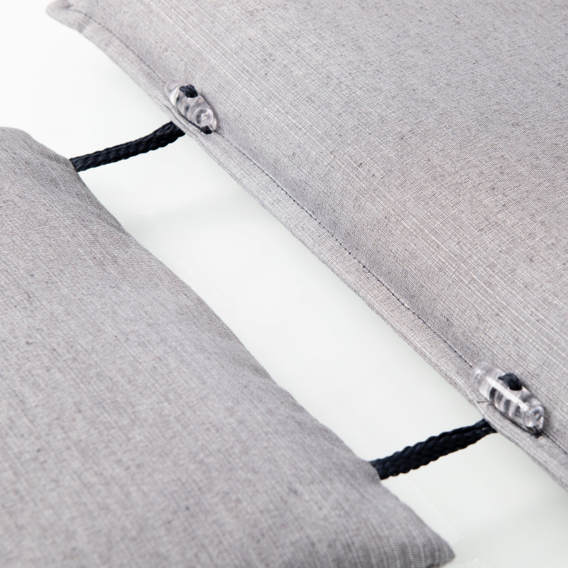 Poduszka z niskim oparciem na meble ogrodowe z serii ELEGANT jest w wersji z obszytym brzegiem. Zapinana jest na przesuwną klamrę. Dzięki klamrze można dopasować rozmiar do wielkości i rodzaju krzesła, klamra jest zamocowana na stałe i nie wysuwa się. Poduszka siedziska jest zapinana na dwa sznurowadła w zagięciu poduszki. Poduszka jest zapinana na zamek...