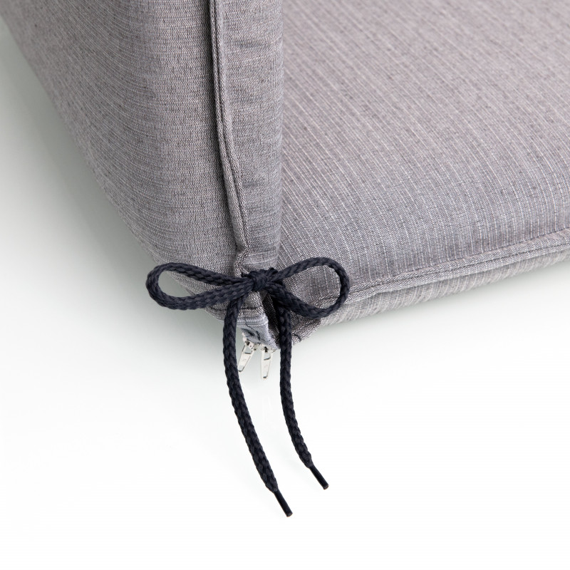 Poduszka należak ogrodowy z serii ELEGANT jest w wersji z obszytym brzegiem. Zapinana jest na przesuwaną klamrę. Dzięki klamrze można dopasować rozmiar do wielkości i rodzaju fotela, klamra jest zamocowana na stałe i nie wysuwa się. Poduszka siedziska jest zapinana na dwa sznurowadła w zagięciu poduszki. Poduszka jest zapinana na zamek błyskawiczny, czasza parasola jest zdejmowany i można go prać ręcznie. Grubość poduszki jest optymalna dla wszystkich typów krzeseł. Konstrukcja nadaje się również do wymagających warunków kawiarni, ogrodów i restauracji.