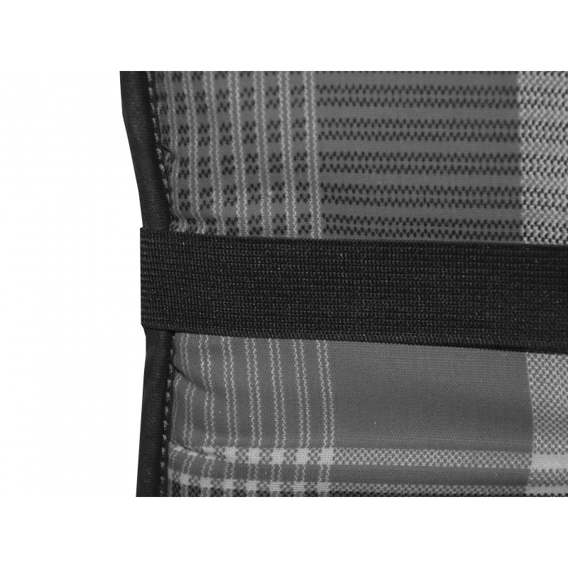 Poduszki z wysokim oparciem do mebli ogrodowych z serii SPOT w wersji z obszytym brzegiem, zszyte 2x w oparciu. Mocowanie za pomocą przesuwanej klamry lub stałej gumki. Dzięki klamrze można dopasować rozmiar do wielkości i rodzaju krzesła, klamra jest stała i nie wysuwa się. Poduszka siedziska jest mocowana za pomocą sznurowadeł w zagięciu poduszki. Pokrowca nie można zdjąć.