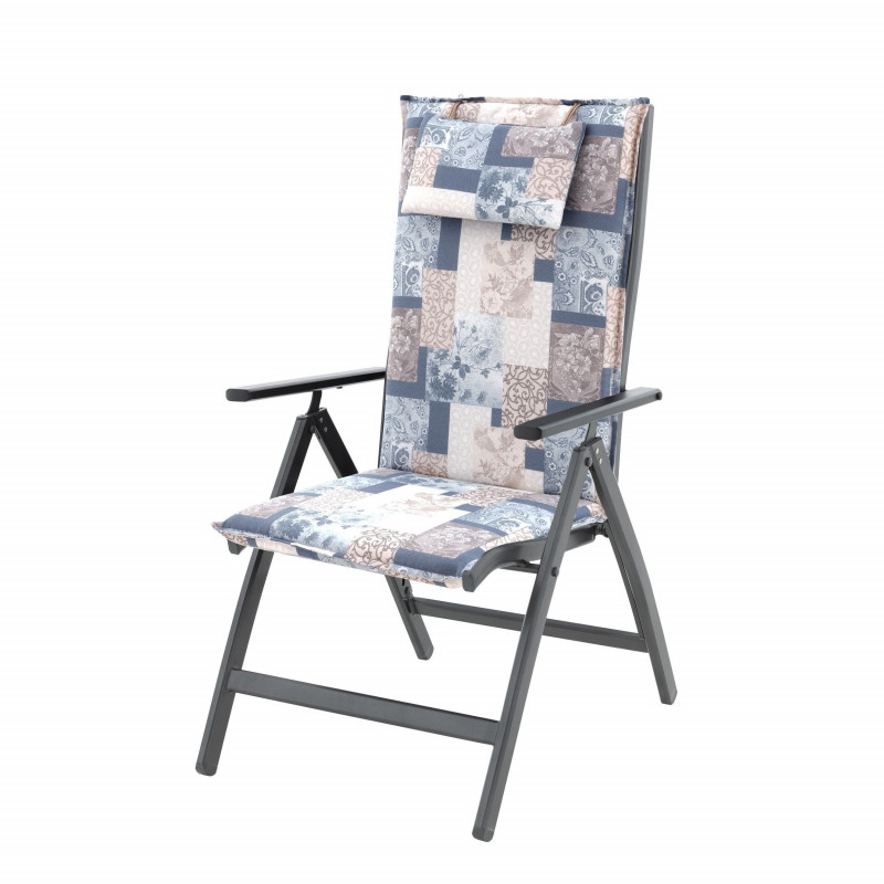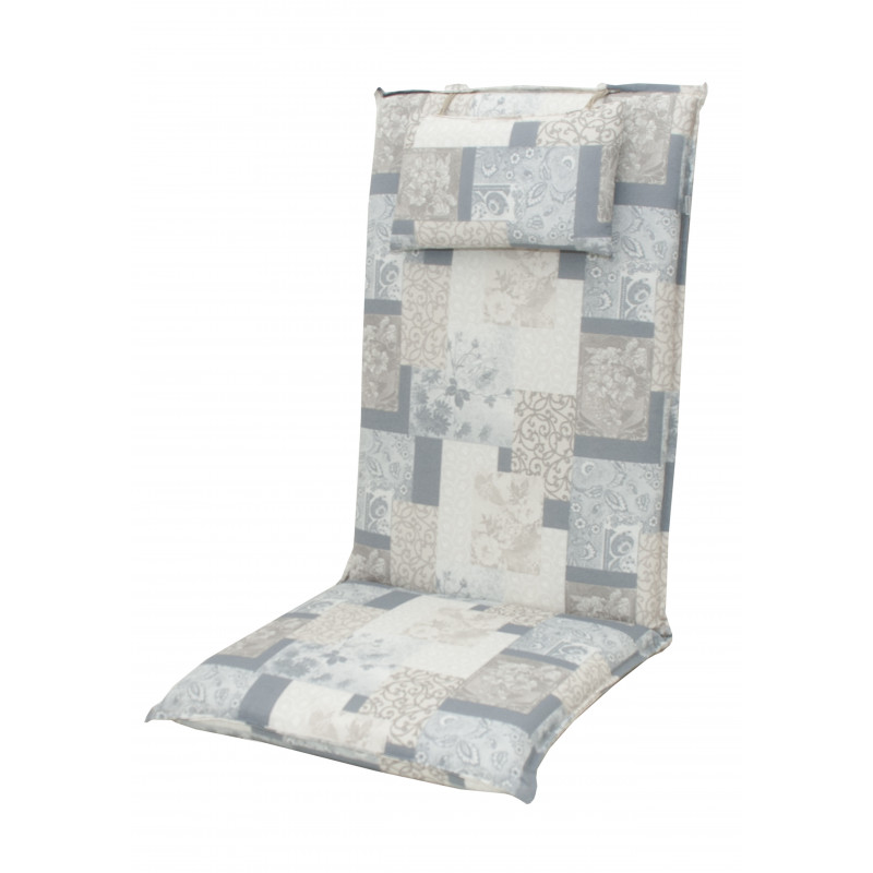 Poduszka z wysokim oparciem do mebli ogrodowych z serii ELEGANT posiada obszyty brzeg. Mocowanie odbywa się za pomocą przesuwanego klipsa. Dzięki klamrze można dopasować rozmiar do wielkości i rodzaju krzesła, klamra jest stabilna i nie wysuwa się. Siedzisko zapinane jest na dwie sznurówki w zagięciu poduszki. Grubość poduszki jest optymalna dla wszystkich typów krzeseł. Konstrukcja nadaje się również do wymagających warunków kawiarni, ogrodów i restauracji. Poduszka zapinana jest na zamek błyskawiczny , poszewkę można zdjąć i wyprać.