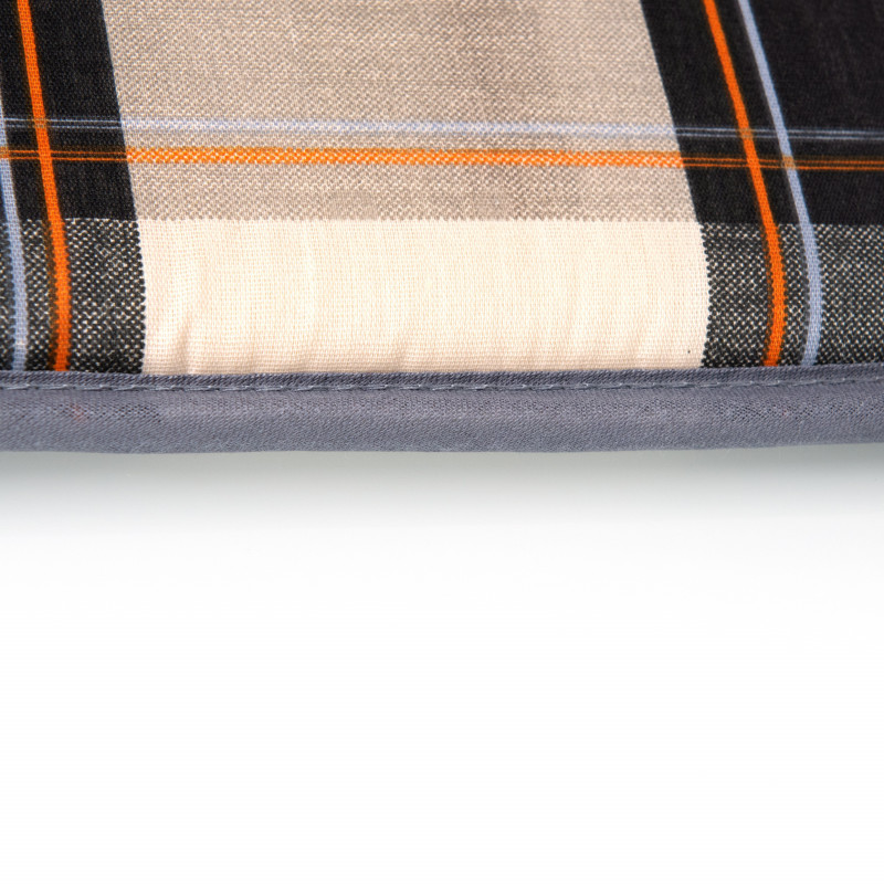 Koc do wygodnego siedzenia na balkonie, tarasie lub w ogrodzie. Odwracalny wzór w kolorze ciemnoszarym/naturalnym. Świetny dodatek dekoracyjny do mebli ogrodowych. Przyjemnie miękki materiał.