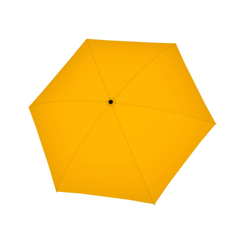 Damski składany parasol o wyjątkowo małej, kompaktowej konstrukcji. Pokrowiec poliestrowy jednokolorowy w kolorze żółtym. Pokrowiec wykonany z cienkiej tkaniny pongee jest przyjemny w dotyku i odporny na zmiany wilgotności i temperatury, nie kurczy się.