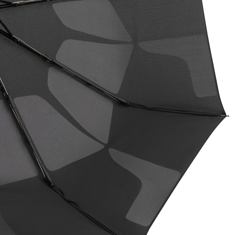 Ten poręczny jednokolorowy parasol jest nie tylko w pełni automatyczny, ale także wyposażony w unikalną funkcję Smart Fold, która zapewnia, że parasol jest zawsze idealnie spakowany w czasie o połowę krótszym niż zwykły parasol. Ta nowoczesna innowacja techniczna jest możliwa dzięki niezwykłemu uchwytowi po wewnętrznej stronie parasola. Konstrukcja wykonana jest z lekkiego, ale wytrzymałego połączenia aluminium, stali i włókna szklanego, dzięki czemu nawet gdy parasol zostanie przewrócony na wietrze, nie zostanie uszkodzony. Poszycie wykonano z przyjemnej w dotyku tkaniny pongee, która jest jednocześnie odporna na zmiany wilgotności i temperatury, nie kurczy się.